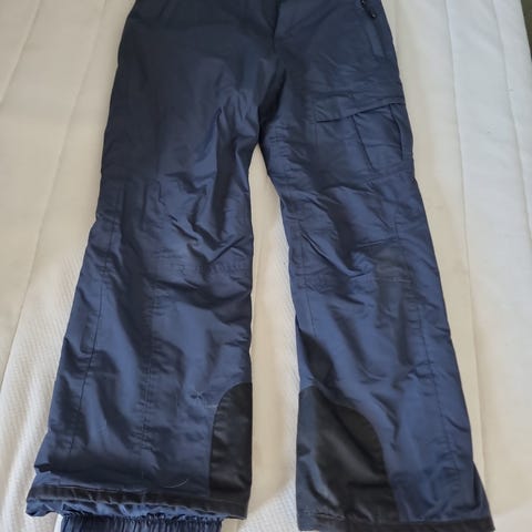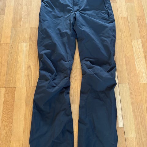 Veldig god og vattert Anima- bukse fra Peak Performance til utelek eller i alpinbakken. Str 160. Fin, mørkeblå farge. Vind/vanntett, pustende. Noen bruksmerker («riper» og et lite hull i stoffet ved den ene lomma samt nede på forsterkninger, se bilder. Ingen betydning for bruken).