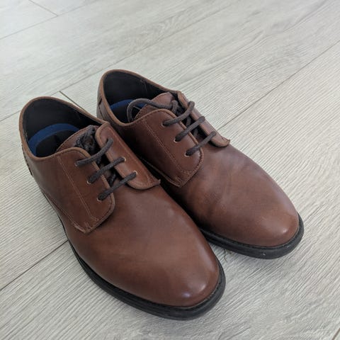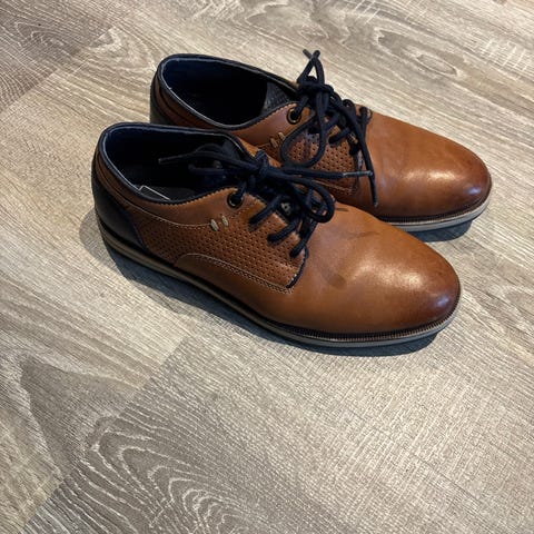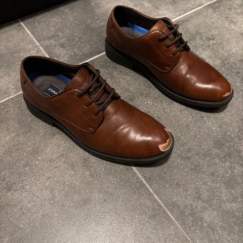 Brukt bare en gang i bryllup. Har noen små merker fremme som kan fikses med litt brun farge. Ellers er de som nye. Merke: John Westbury