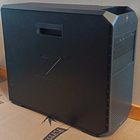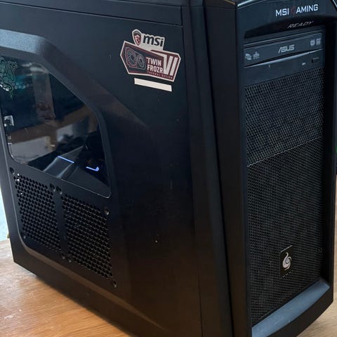 Litt slitt, noen riper her og der, og gummiplasten på føttene trenger en vask. Liten bulk i panelet til 5,25-tommerplassen. HDD-vuggene mangler, så du får med et par skinner fra et annet kabinett som gjør at HDD i hvert fall kan skli inn på riktig plass, men ikke sitter helt låst fast.