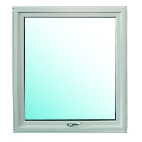 Hvit toppsving vindu med glassfelt og ramme i hvit utførelse. Vinduet er hengslet i overkant og kan åpnes utover Toppsving,