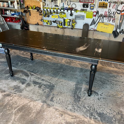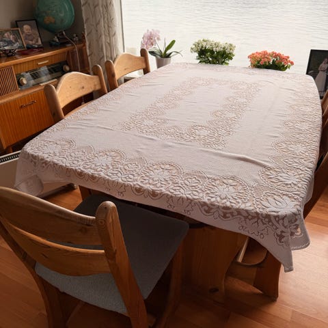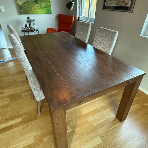 En solid spisestue med 8 stoler. Husker ikke hvilken tresort.