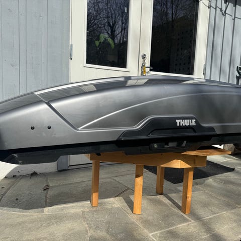 Stor Thule skiboks, lengde 230 cm, bredde 80 cm, selges. 2 nøkler følger med. Boksen er nesten ubrukt. Må hentes i Vefsn. Ring for nærmere avtale 95224228