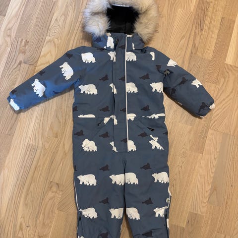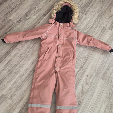 Dressen er godt brukt av et barn en sesong. Den har litt slitasje på kne og rompe men den er fremdeles god og varm! Jeg vil si den har masse bruk igjenn. Jeg legger ved bilder av kne og rumpe .