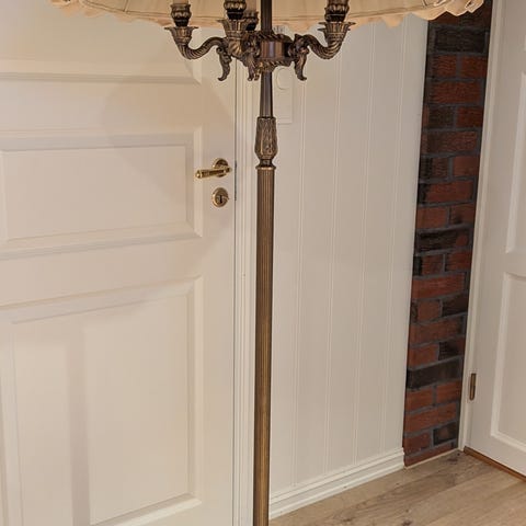 Ikke kjent alder på lampen. Bryterne er tatt bort da disse ikke var trygge. For å slå på/av lampen, må bryter på lampeledningen benyttes. Alternativt kan pærer fra Phillips Hue benyttes.