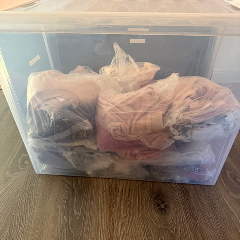 Diverse klær med forskjellige størrelser. Totalt 53 plagg