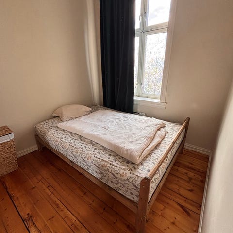 Senga er i god stand. Eg har forsterka sengeramma med nokon plankebitar under hjørna, noko ein ikkje ser når senga er montert.
