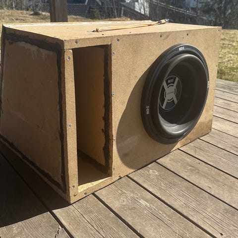 Basskasse bygd for 15” kicker, selges uten element. Det er innebygd kasse i kassen for 6x9, se bilder. Basskassa er på ca 88 liter uten bassporter.