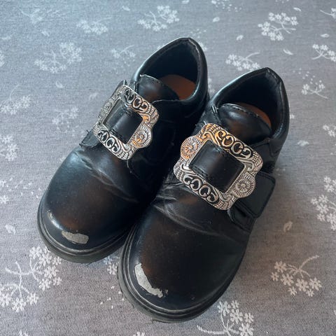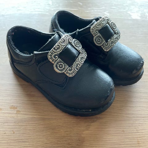 Bunadsko brukt en gang. Har fått skrapemerke på tuppen. Har dekket over med svart tusj.