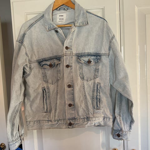 InWear olajakke i denim for dame i størrelse 42. Jakken er blå og laget i denimstoff. Den har rund hals, knappelukking foran og flere lommer med klaff og knapp. Passer som en lett jakke til hverdagsbruk og kan brukes over ulike antrekk hele året, avhengig av lag-på-lag-styling.