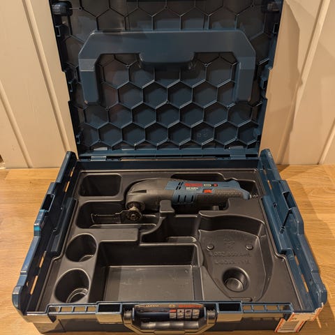 Maskinen er brukt et fåtall ganger og fremstår som et pent eksemplar, følger med 3 stk batterier, men ikke lader.