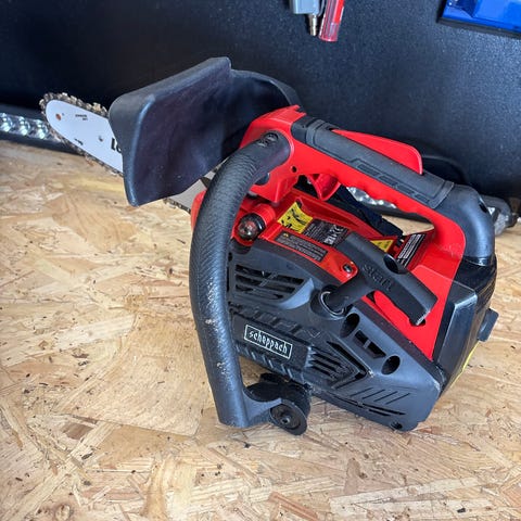 McCulloch MAC 1200 motorsag i gul farge. Bensindrevet modell med automatisk oljesmøring (Automatic Oiling). Motorsagen har fremre og bakre håndtak, kjedebrems og kjedebeskyttelse. Egner seg til kapping av ved og annet trevirke i hage og på mindre byggeprosjekter. Modell- og sikkerhetsinformasjon står på typeskiltet på siden av sagen.