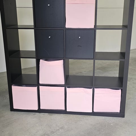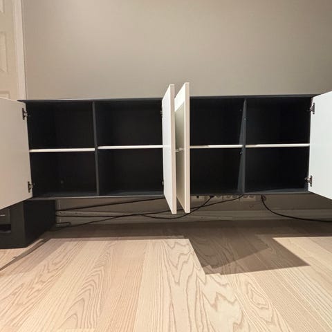 Modulene kan brukes sammen som en oppbevaringsvegg, eller hver for seg. De består av skap med dører, åpne hyller og skuffer – perfekt til oppbevaring av klær, bøker, kontorting eller lignende.