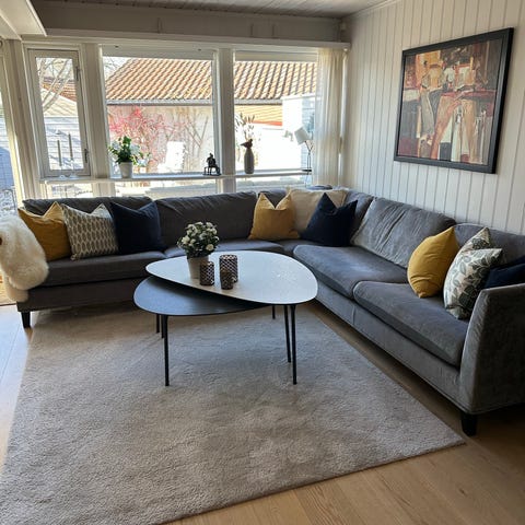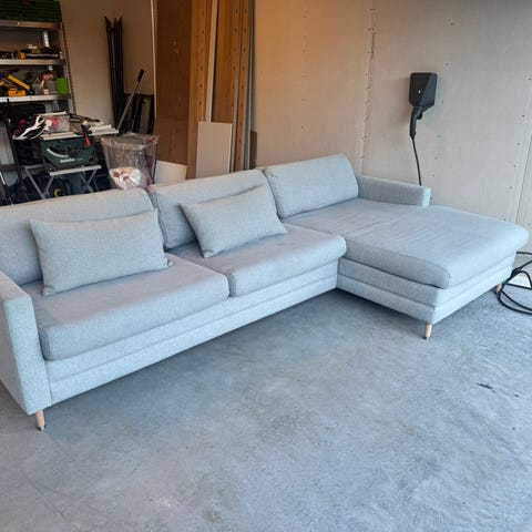 Stilfull sofa med sjeselong fra Bolia selges. Nypris 50000kr - 4 år gammel.