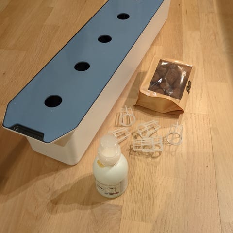 Systemet fungerer slik at man først spirer frø i startbrettet, og deretter flytter plantene over i de to større brettene når de vokser.