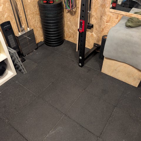 Mattene er puslematter som enkelt klikkes sammen for rask montering. Passer godt til klubb eller hjemmegym.