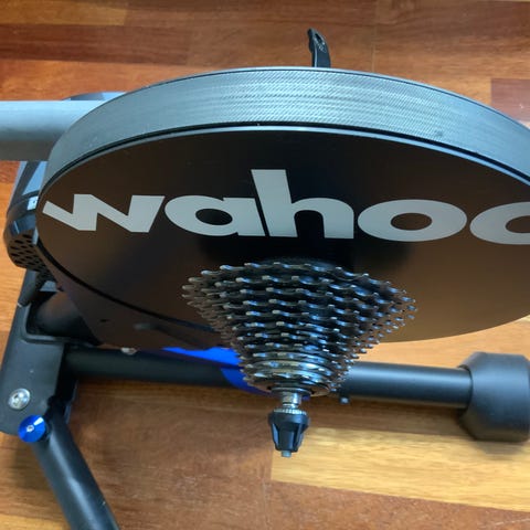 Wahoo Kickr Core sykkelrulle med Zwift Cog og Zwift click for virtual shifting.