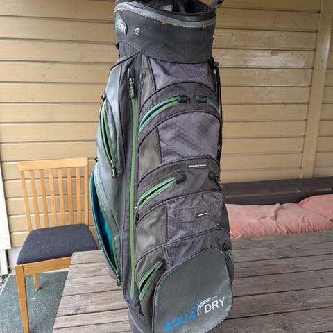 Izzo golfbag bærebag med stativ i grå farge med grønne detaljer.