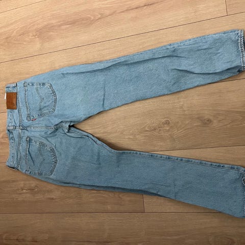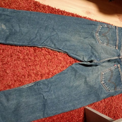 Levi's 550 jeans for herre i blå denim. Buksen er i størrelse W34 og merket som M. Materialet er bomull. Klassisk 5-lommers modell med glidelås og knapp i gylf, samt belteløkker i linningen. Passer til hverdagsbruk og kan kombineres med ulike overdeler for et enkelt og funksjonelt antrekk.