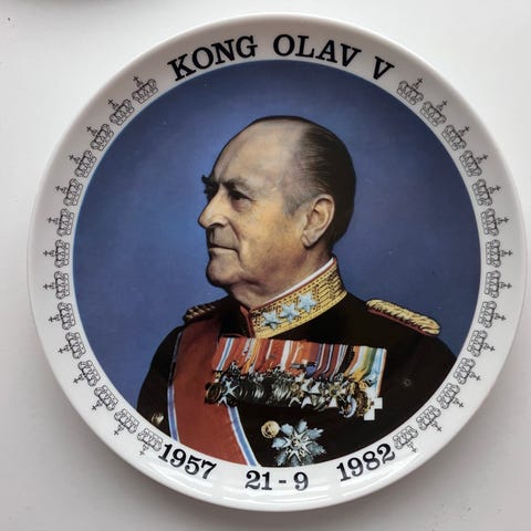 Minneplate H.M Kong Olav V. Laget av Porsgrunn porselen. Plettfri