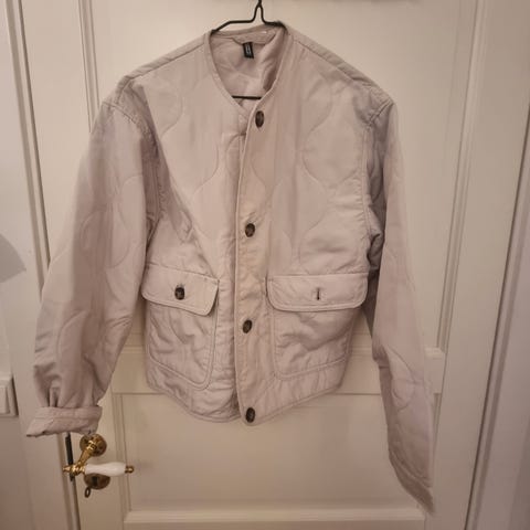 Veldig kul vintage print i rynkete struktur og fargenyanser i grått og beige. Lukkes med trykknapper. Det er i følge All Saints en skjorte, den er ikke fôret, kjøpt i herreavdelingen i London. Veldig lite brukt. Det står L på lappen, men er nok nærmere en herre S eller dame S/M
