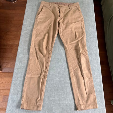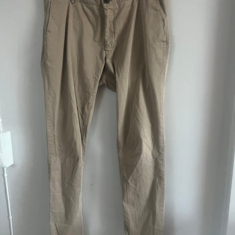 Tøff Peak Performance chinos for herre i størrelse M. Buksen beige og laget av bomull. Klassisk chinosmodell som passer til hverdagsbruk og mer oppkledd stil.