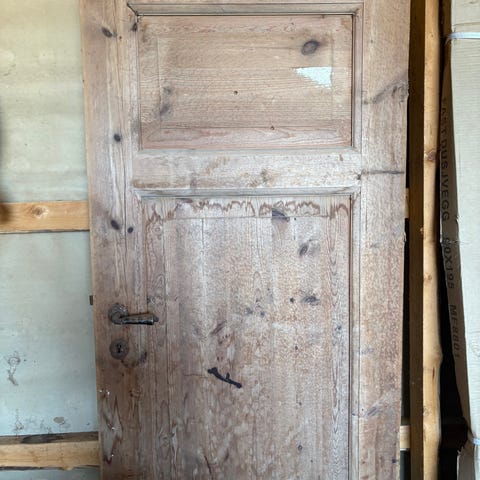 Dør i heltre gis bort. Mål: 73 cm bred, 204 cm høy.