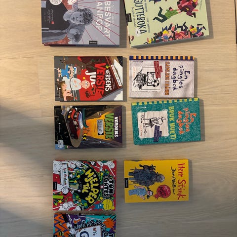 Kan selges separat eller som pakke. Bokpakke med barne- og ungdomsbøker i blandet sjanger. Pakken inneholder blant annet illustrerte romaner, tegneseriepregede bøker, fantasybøker, humorbøker, aktivitets- og faktabøker samt en strikkebok for barn. Flere kjente serier og enkeltstående titler, både på norsk og engelsk. Bøkene passer hovedsakelig for barn og unge i ulike alderstrinn, fra tidlig skolealder til ungdom. Ulike formater og omslagstyper. Egner seg som samlet pakke til hjem, skole eller fritidsordning.