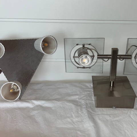 Varmt lys, 125 m høgde, 2 spors pr lampe som kan vinkles 270 grader.Selges samlet for 3000,- Pr stk 1600,-