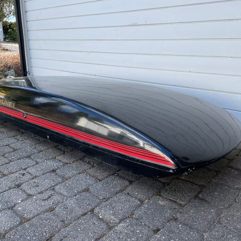 Inkludert feste fra Thule. Ripete på utsiden, lagret i garasjen, men ellers i god stand. Med nøkkelen.