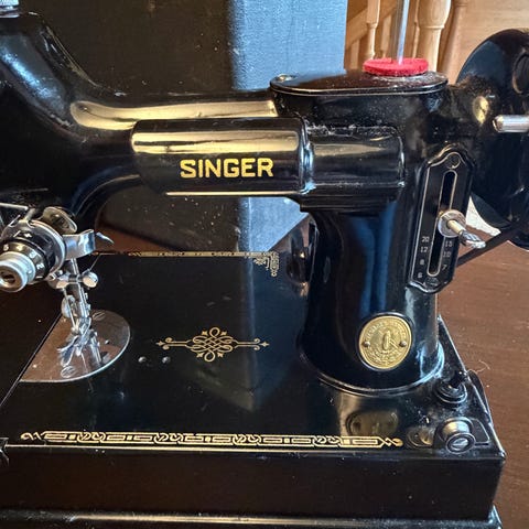 Singer 99K symaskin med elektrisk motor i svart utførelse. Maskinen har serienummer EK408005 og er produsert av The Singer Manufacturing Co. Motoren er en Singer Sewing Motor, 220 volt, 70 watt, 0,3 ampere, merket BAK 4-11, laget i Storbritannia. Maskinen er beregnet for vanlig rettsøm og kan brukes til ulike typer sømarbeid i hjemmet, avhengig av nål- og trådvalg samt justeringer. Passer for den som ønsker en mekanisk symaskin i metallkonstruksjon med innebygd motor.