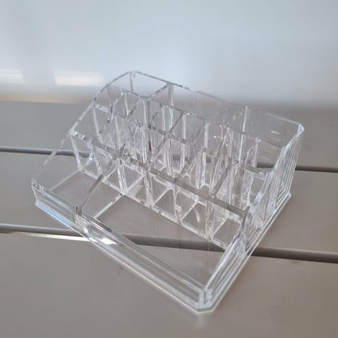 Praktisk sminkeorganisator med flere rom til sminke, pensler og småting. Perfekt for å få litt orden i sminkekaoset.
