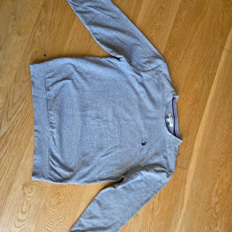 Vintage Björn Borg genser for herre i størrelse M. Genseren er grå og laget av bomull. Klassisk rund hals med ribbekant og ribb nederst og på ermene. Diskré Björn Borg-logo på lappen nede på fronten. Passer til hverdagsbruk og fritid.