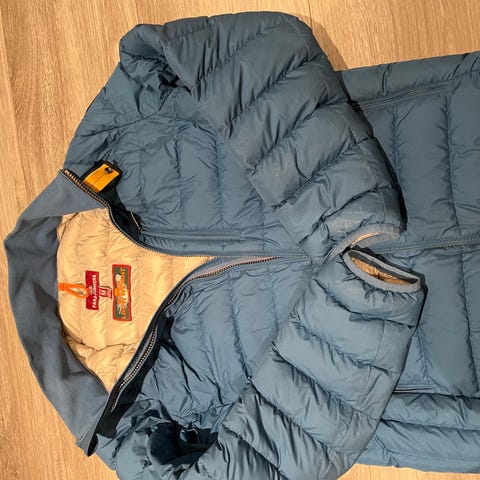 Parajumpers Super Lightweight dunjakke for herre i størrelse M. Jakken er blå på utsiden med lys innside og karakteristiske oransje detaljer. Fylt med dun for lett isolasjon. Modellen har glidelåslukking foran, høy krage og flere lommer, inkludert innvendig lomme merket «Security Pocket». Egnet som lett ytterjakke i kjøligere vær. En ca 8mm rift foran (se siste bildet) ellers ingen slitasje. Kom gjerne med bud 😊