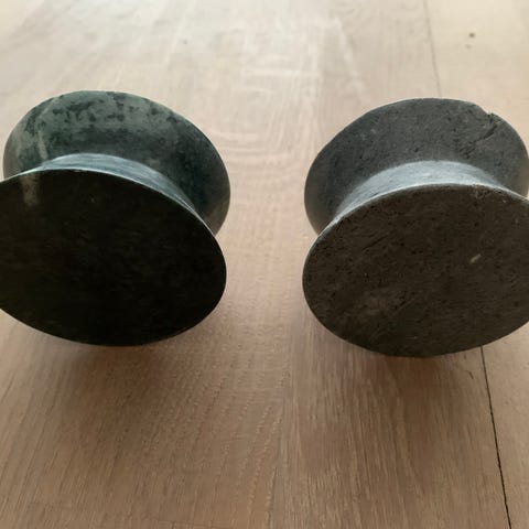 Veldig flott krok av messing og mørkegrå marmor til salgs. Ubrukt. Beslag og eske følger med.