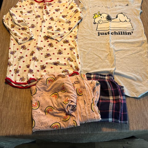 Alt er godt brukt. Kan ikke se flekker. Nattkjolen fra Joha er nuppete.
