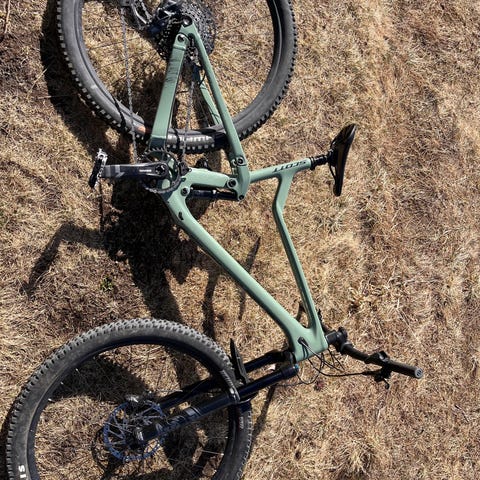 Bak demperen har en liten lekkasje å rebounden er litt ødelagt. Dette er en karbon ramme så den er kjempe lett
