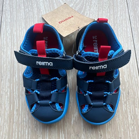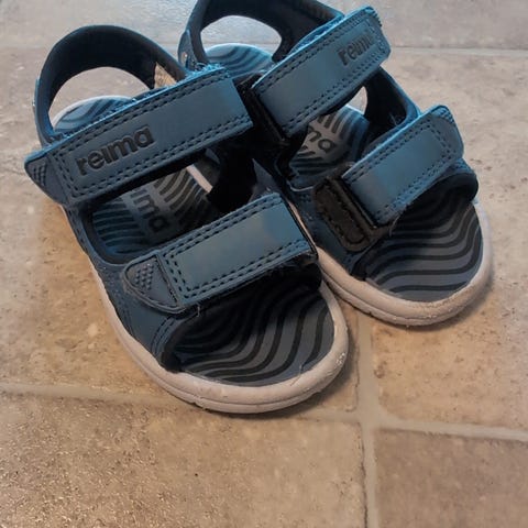 Veldig fine og lette Reima-sandaler i str. 24. Brukt kun inne (bare noe ganger hjemme) og fremstår som nye😊🌸 Det er et lite merke på den ene sandalen – se bildet.