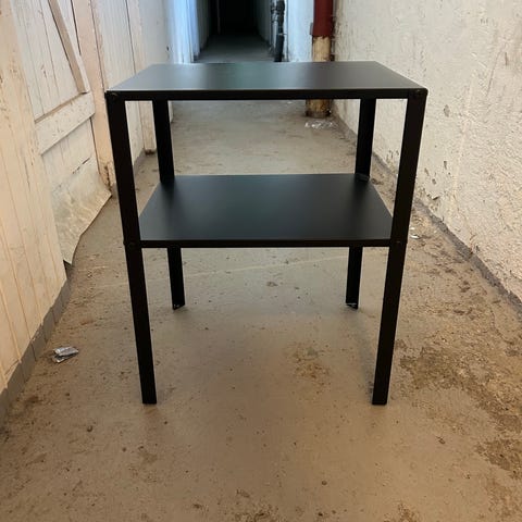 Minimalistisk, lekker sort hylle eller nattbord selges. Vært brukt som nattbord.