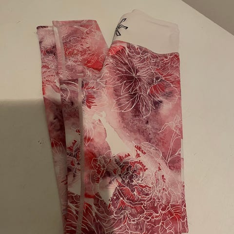 Nike Dri-Fit treningstights for dame i størrelse M. Tightsen er laget i polyester med Dri-Fit-materiale som transporterer fuktighet. Den har flerfarget, blomsterinspirert mønster på lys bunn. Egnet til trening og annen fysisk aktivitet der det er behov for tettsittende og funksjonelt treningstøy.