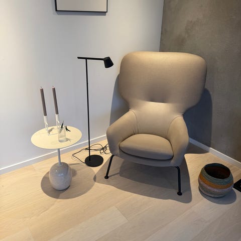 Fotskammel følger ikke med. Må hentes og bæres ned en etasje :)
