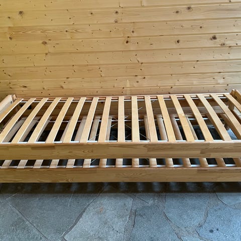 Selger en seng i størrelsen 120×200. Svartmalt.