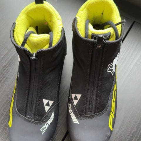 Fischer XJ Sprint langrennsko for barn i størrelse EU30. Overdel i syntetisk materiale, syntetisk såle og tekstilfôr. Fargekombinasjon svart og gul. Skoene har glidelåslukking foran og hempe bak for enklere av- og påtaking. Beregnet for klassisk langrenn for barn.
