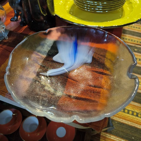 Vakker kunstglassbolle i flerfarget dekor fra svenske Kosta Boda