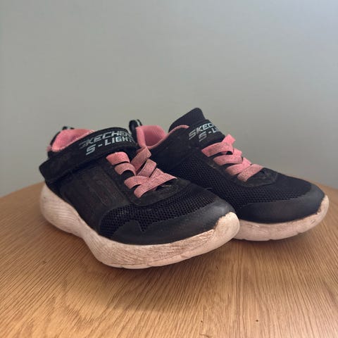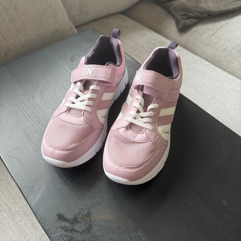 joggesko for barn,Skoene er svarte med rosa innside og detaljer. Overdel i tekstil og syntetisk materiale med kombinasjon av mesh og glatte partier. Lukking med borrelås og elastiske lisser for enkel av- og påkledning. Kraftig yttersåle i gummi med mønster for godt grep. Passer til hverdagsbruk og lett aktivitet utendørs.