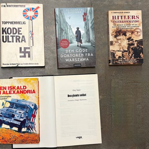 4 stk store bøker relatert til 2. verdenskrig. Bla GERBIRGSJEGER