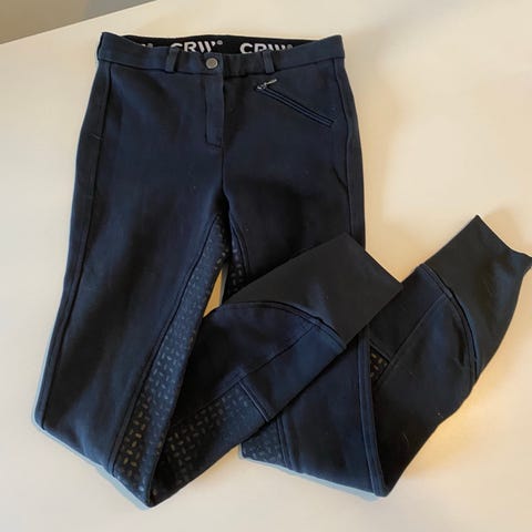 CRW ridebukse i burgunder farge. Buksen har helforsterket sete med grip for bedre feste i salen, samt strikk i livet med CRW-logo. Modellen har smal passform med ankelløsning uten borrelås eller glidelås for god komfort i ridestøvlene. Passer til ridning og stallbruk.