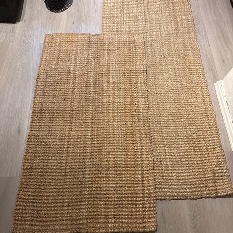 Selger dette veldig fine teppet fra Kid Interiør. Det er kun kjøpt til å bli brukt til boligstyling og visning. Det er håndflettet og i 100% naturlig jute. Jeg har benyttet det som et lite teppe, men det er også ment til å brukes som dørmatte feks. Eller på en liten balkong.