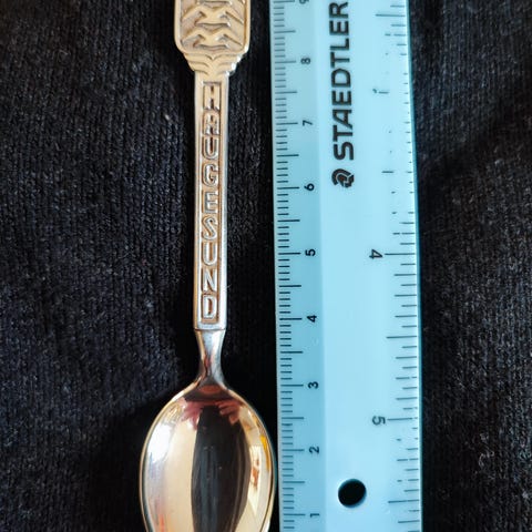 Souvenirskje med bynavn Steinkjer. Skjeen er i 925S sølv (sterlingsølv), med byvåpenmotiv med stjerne og krone øverst på skaftet. Egnet som samlerobjekt eller til bruk som liten teskje/decorativ skje.