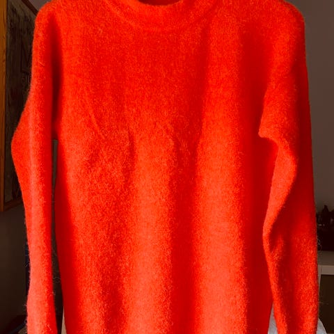 Dyp rødfarge. Lite brukt. Uten slitasje eller skade. Vaskes på ullprogram.