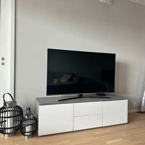 Pent brukt TV-benk med 2 skap og 2 skuffer.